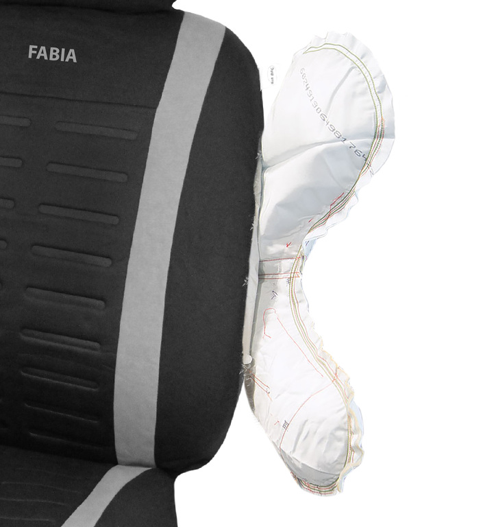 Autopotahy s výšivkou FABIA jsou vyrobeny a certifikovány atestem pro použití na sedadla vozidel i s bočními airbagy. V případě vystřelení airbagu se roztrhne speciálně ušitý šev na boční straně autopotahu. Lze použít na vozy FABIA I, II, III.