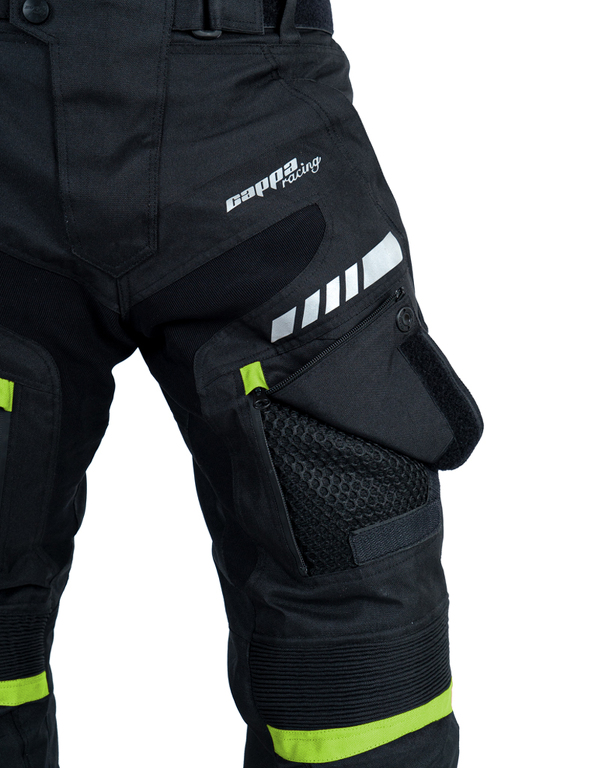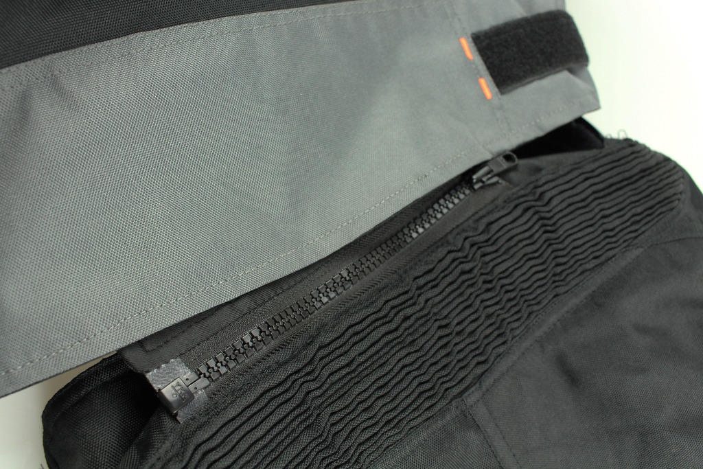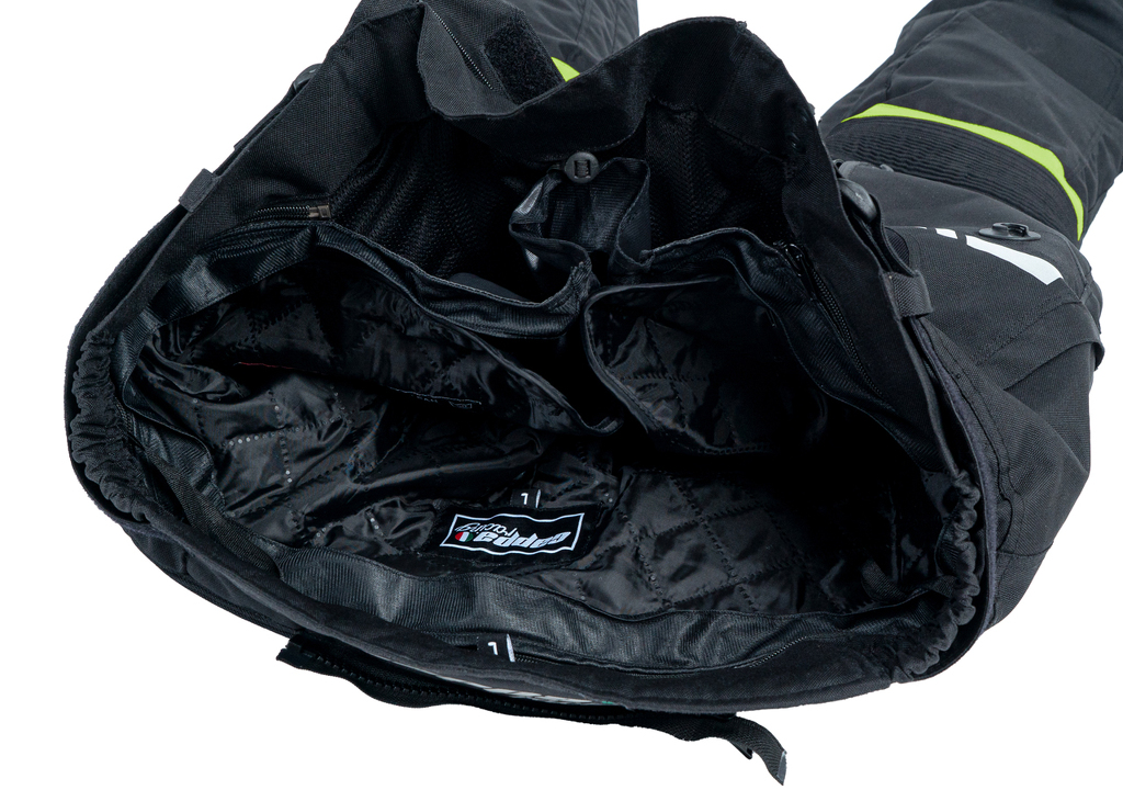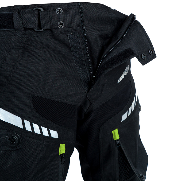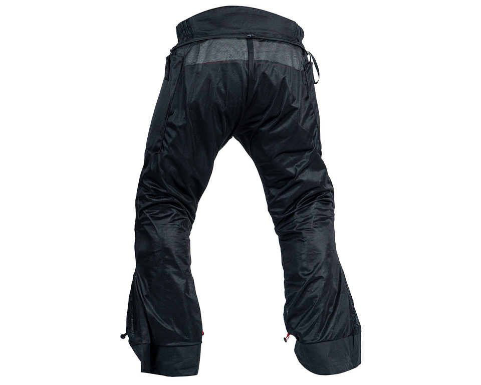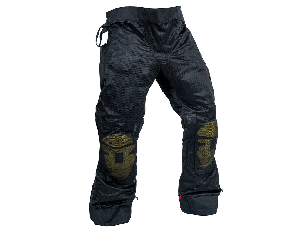Střih a provedení kalhot je uzpůsobeno jízdě na motocyklu. Rozkrok je prodyšný a elastický pro komfort při sezení na sedle. Vysoký pas je spolu s koleny mírně elastický pro nejlepší padnutí.