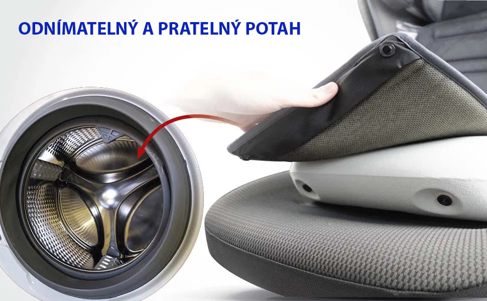 Potah je snímatelný a pratelný. Sedačku lze také snadno složit na plocho sklopením sedáku pro skladování a přepravu.