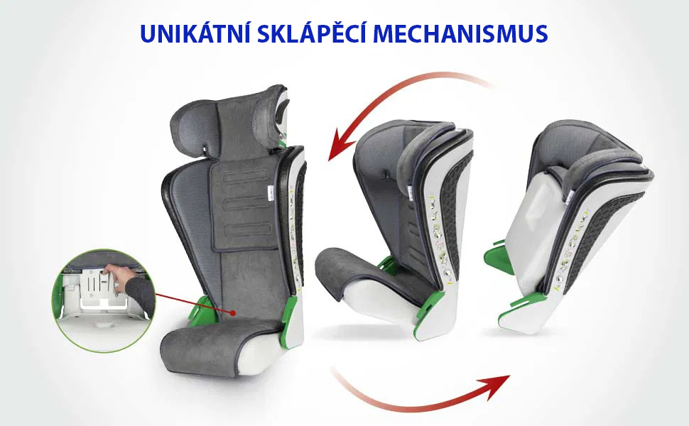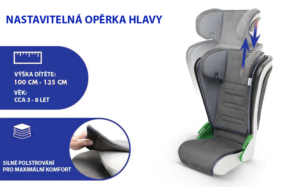 Komfort zajistí jak dětem, díky pohodlnému polstrování a nastavitelné opěrce hlavy, tak i dospělým s maximální skladností a snadnou údržbou.