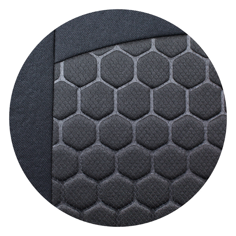 Autopotahy neklouzají po sedadle díky měkkému molitanu na vnitřní straně potahu. Středové části jsou vyrobeny z prošívané polyesterové tkaniny s dodatečným 3D polstrováním. Boky a záda z elastického polyesteru.