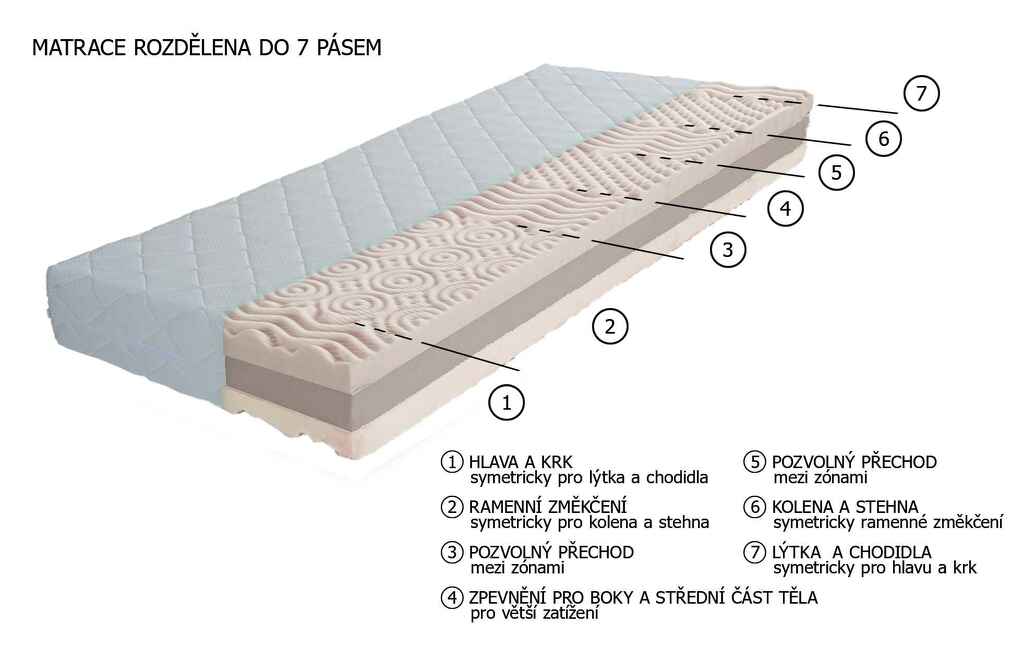 - quality core with 7 zones for perfect adaptation to the contours of the body