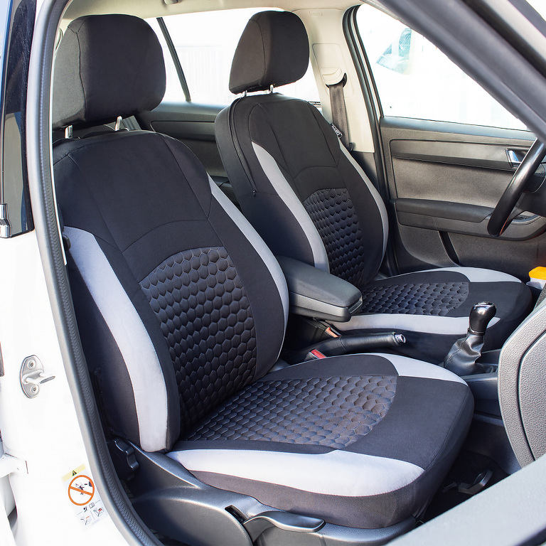 Autopotahy neklou­zají po sedadle díky měkkému molitanu na vnitřní straně potahu. Středové části jsou vyrobeny z prošívané polyesterové tkaniny s dodatečným 3D polstrováním. Boky a záda z elastického polyesteru.