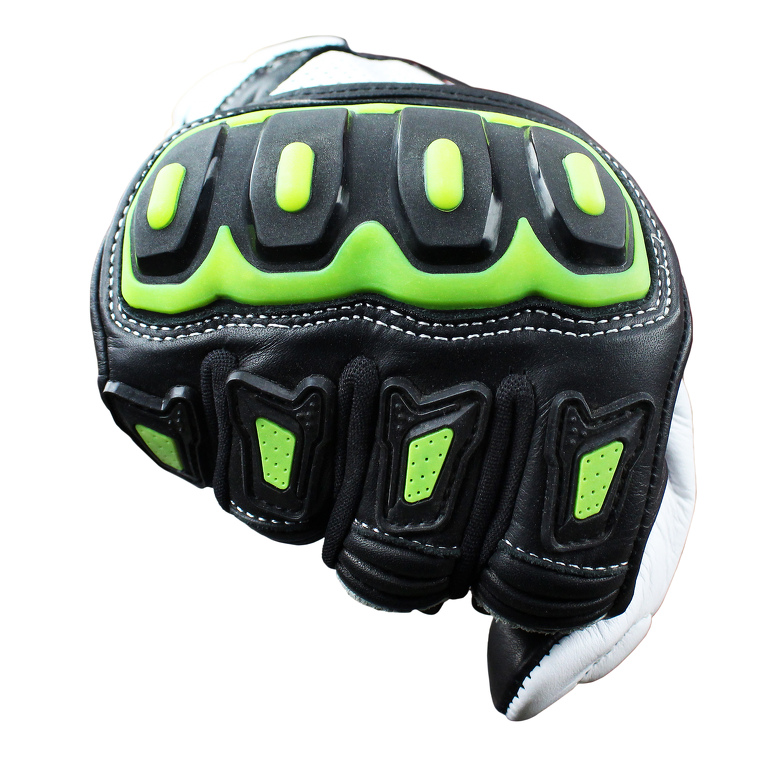 Krátké moto rukavice BRAZILIA vyrobené z kůže. S pevnými chrániči a vyztuženími na dlani a prstech.