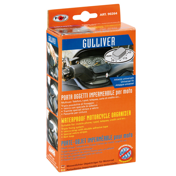 Kvalitní voděodolné pouzdro pro pohodlné uchování malých osobních věcí na cestách. Pouzdro lze použít na motocykl, jízdní kolo nebo skútry. Jednoduché upevnění pomocí suchého zipu nebo na opasek.