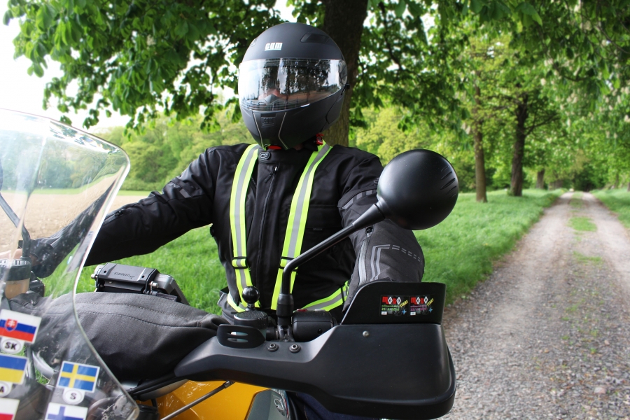 Popruhy pohodlně zapnete i přes motorkářskou bundu.