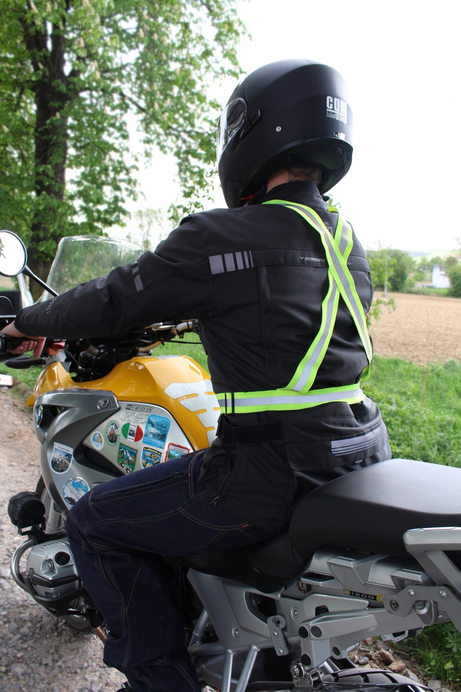 Zelené reflexní popruhy ve tvaru kříže, které zvyšují viditelnost díky reflexnímu materiálu a výrazné barvě. Primárně určeny ke zvýšení bezpečnosti při jízdě na motocyklu, či jízdním kole.