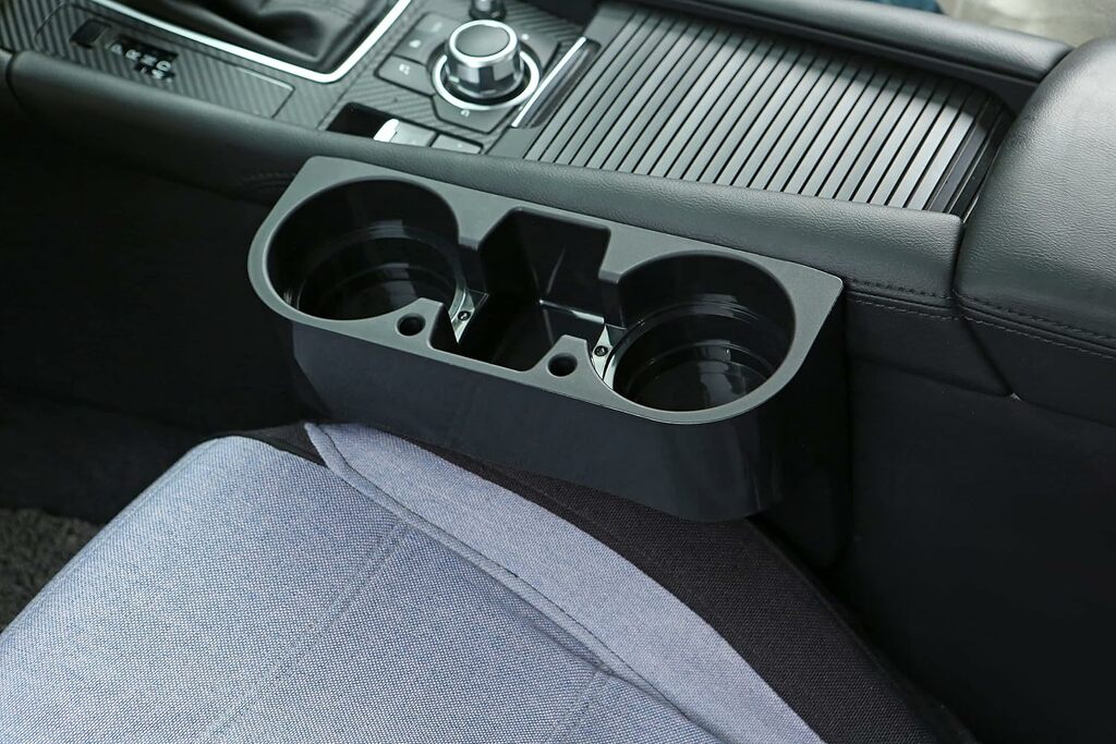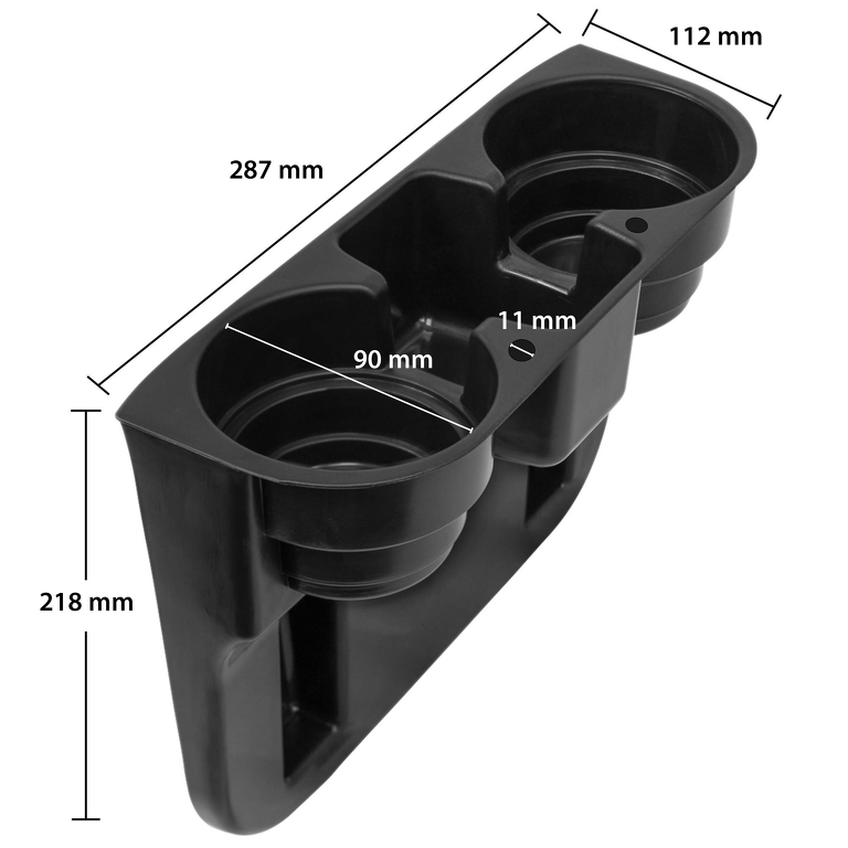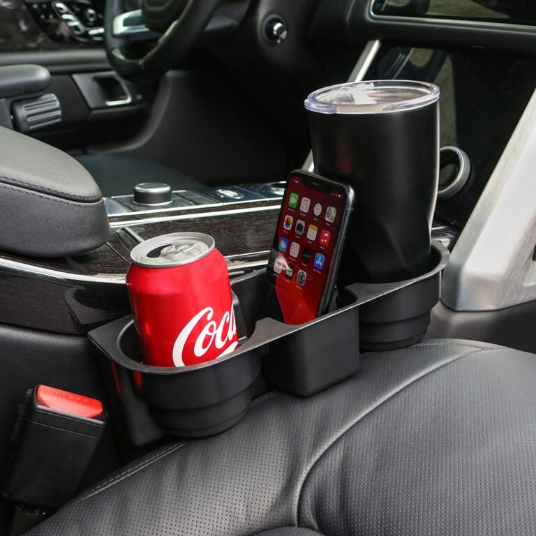 Univerzální držák na nápoje a další předměty pro použití v interiéru osobních automobilů i v domácnosti. Mimořádně snadná instalace zasunutím mezi sedadlo a středovou konzoli, do kapsy opěradla, mezi zadní sedadla, apod. Razantně rozšíří odkládací prostor při cestování.