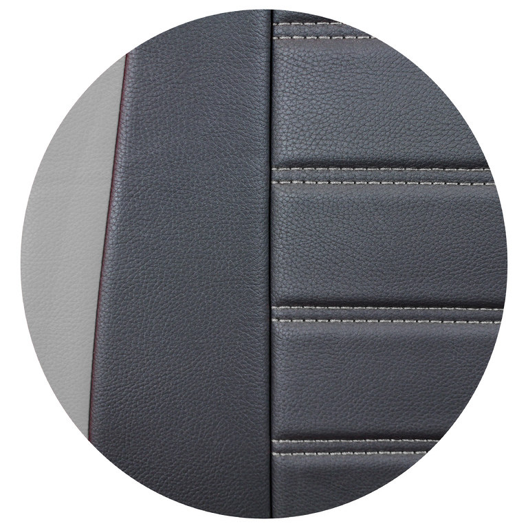 Autopotahy neklouzají po sedadle díky měkkému molitanu na vnitřní straně potahu. Středové části jsou vyrobeny z eko kůže. Boky z elastického polyesteru a záda z elastického polyesteru.