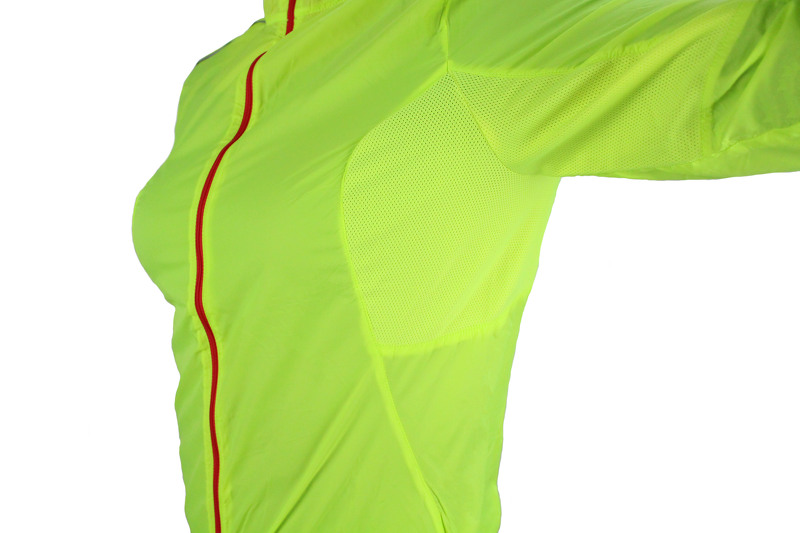 Zapínání na zip. Vybavena ventilovaným podpažím a jednou zadní kapsou určenou na zabalení samotné bundy, či uložení drobností.