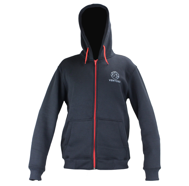 Pracovní mikina z bavlny a polyesteru, elastické zakončení pasu a rukávů, kapuce se stažením na šňůrku, klokaní kapsa, průběžný zip, barva červená/černá