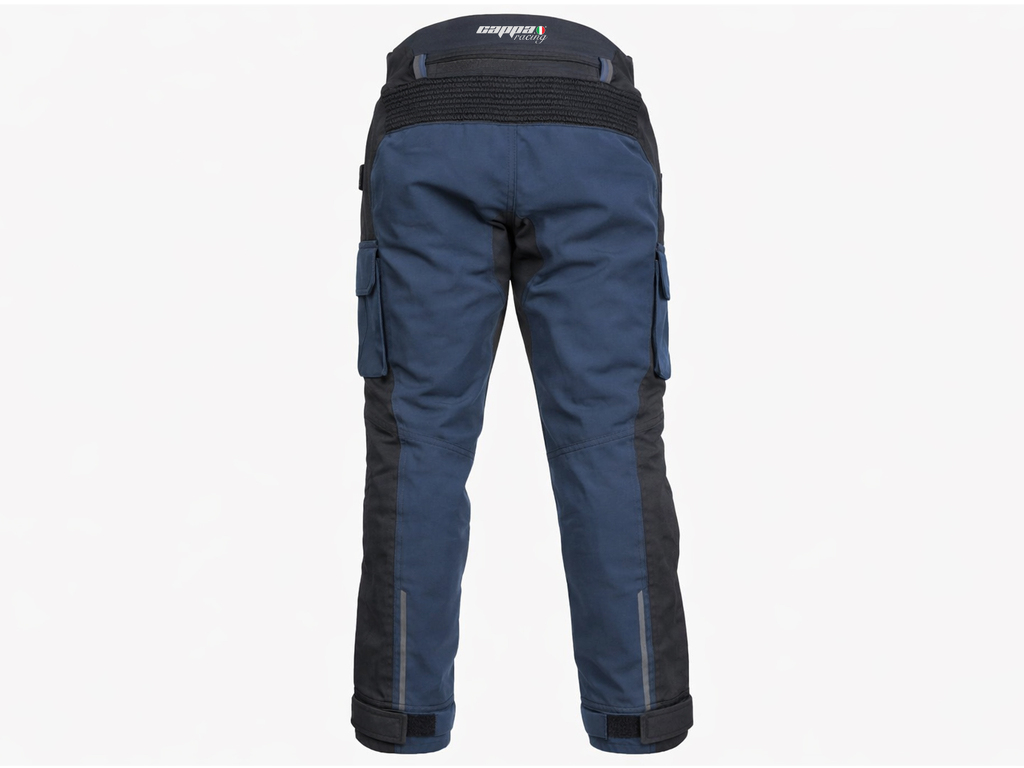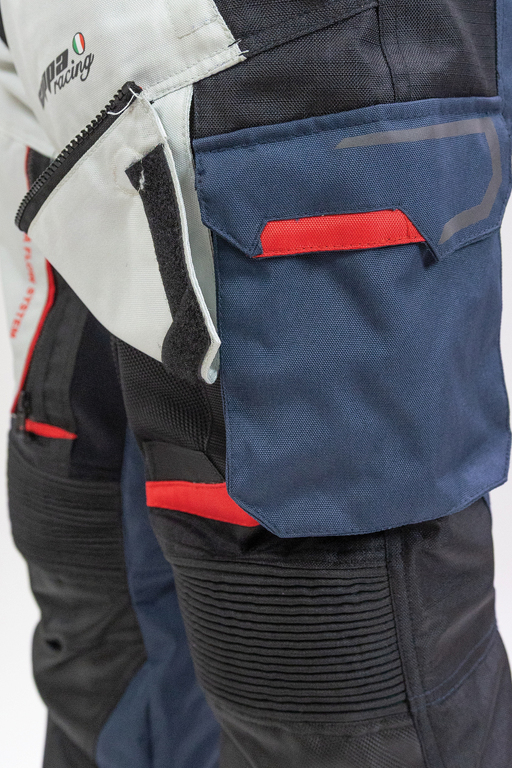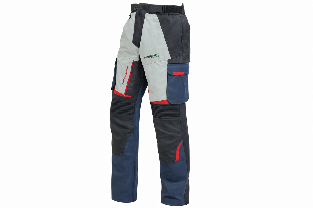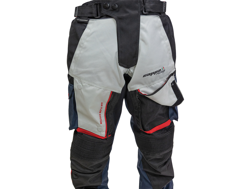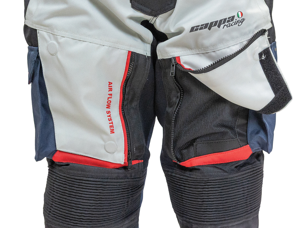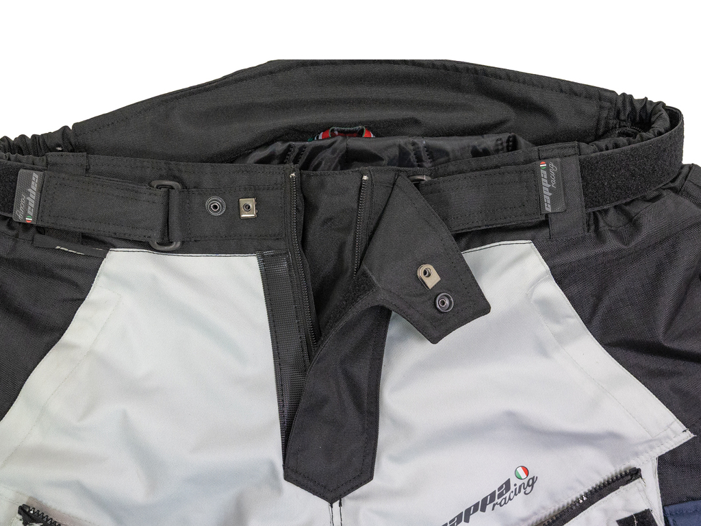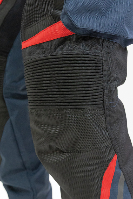 Střih a provedení kalhot je uzpůsobeno jízdě na motocyklu. Rozkrok je prodyšný a elastický pro komfort při sezení na sedle. Vysoký pas je spolu s koleny mírně elastický pro nejlepší padnutí.