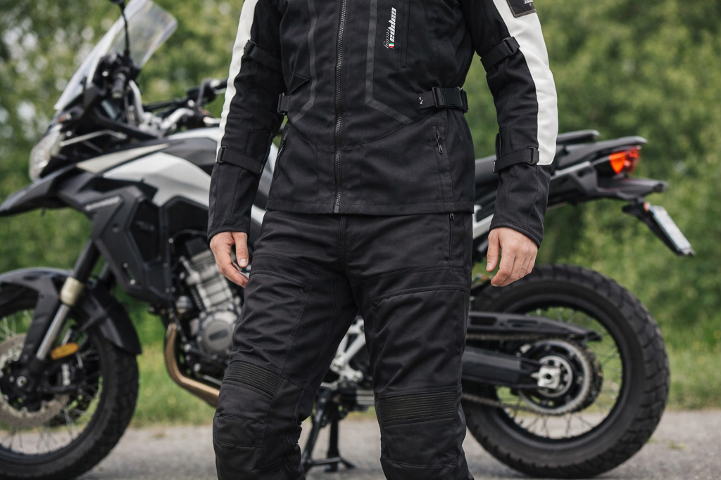 Střih a provedení kalhot je uzpůsobeno jízdě na motocyklu. Rozkrok je prodyšný a elastický pro komfort při sezení na sedle. Vysoký pas je spolu s koleny mírně elastický pro nejlepší padnutí.