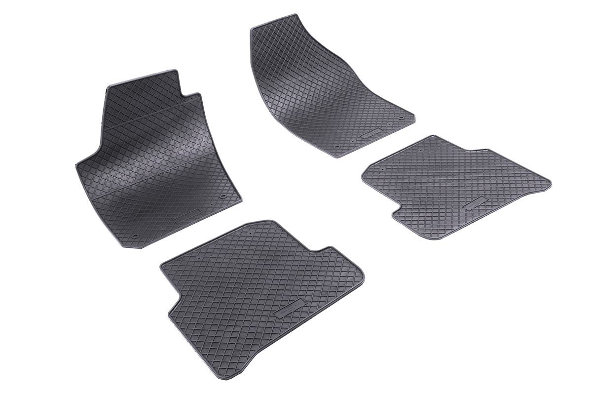 Sada (4 ks) přesně pasujících gumových koberců pro Škoda Fabia III 2014-2021 Design. Praktický doplněk s cca 10 mm okrajem chránící podlahu Vašeho auta před vlhkostí a nečistotami v každém počasí.