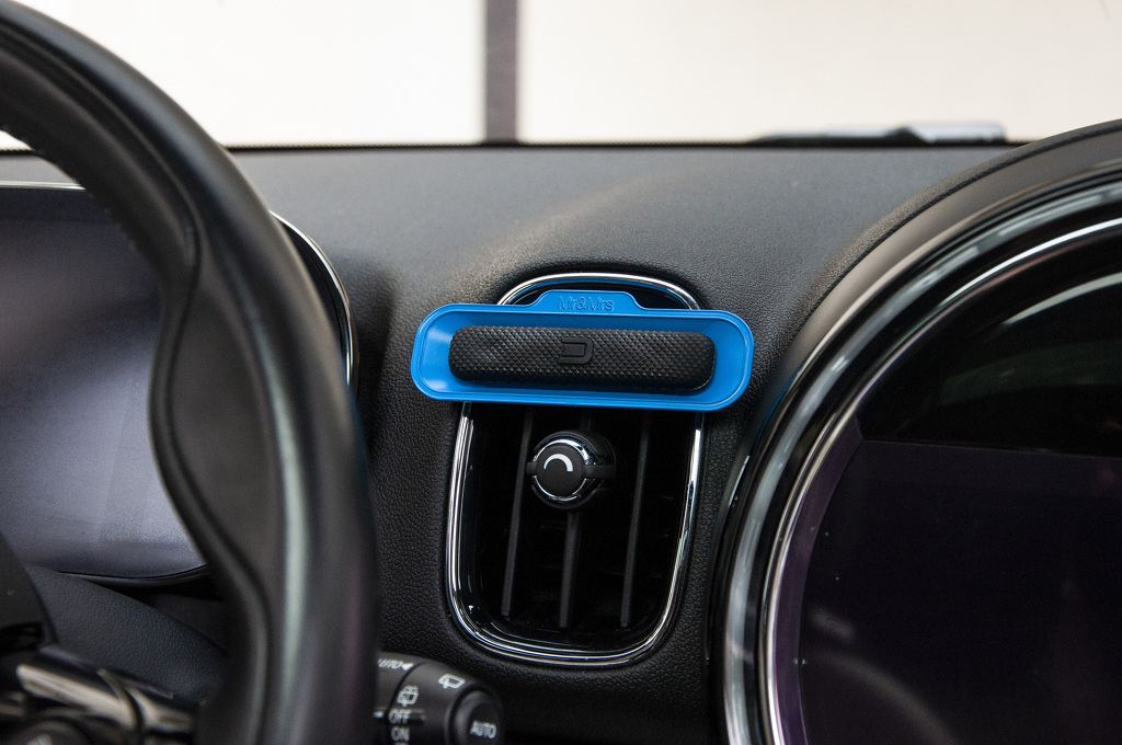 - Upevnění do mřížky výdechu klimatizace pomocí kolíčku