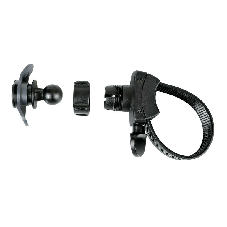 Absolutní kontrola nad průměrem objímky umožní montáž na jakýchkoliv řídítkách, trubkách, apod. Kulový kloub zámku umožní otočení zařízení do požadované polohy a dá se závitem zajistit.