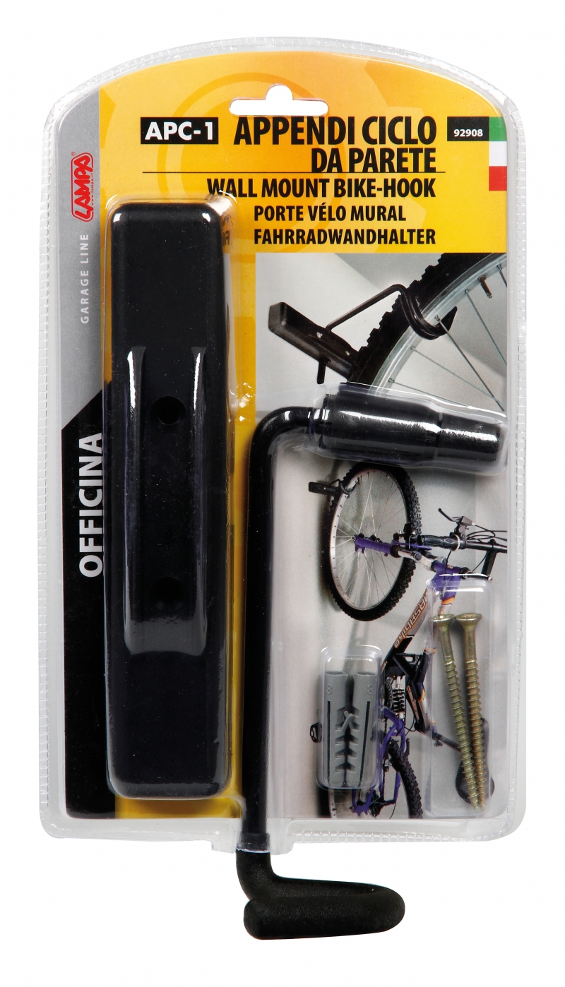 Držák jízdního kola na zeď, který šetří místo a chrání pláště. Hák je potažen pryží pro zabránění poškrábání a poškození kola. Šrouby s hmoždinkami součástí balení.