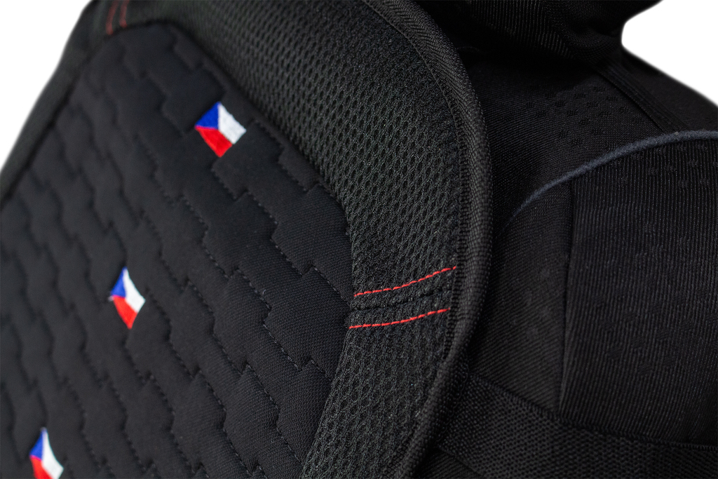 Univerzální přehoz na přední sedadlo PATRIOT poskytuje interiéru Vašeho automobilu moderní vzhled se stylovou českou vlajkou po celé délce potahu a chrání Vaši přední sedačku před opotřebením a nečistotami.
