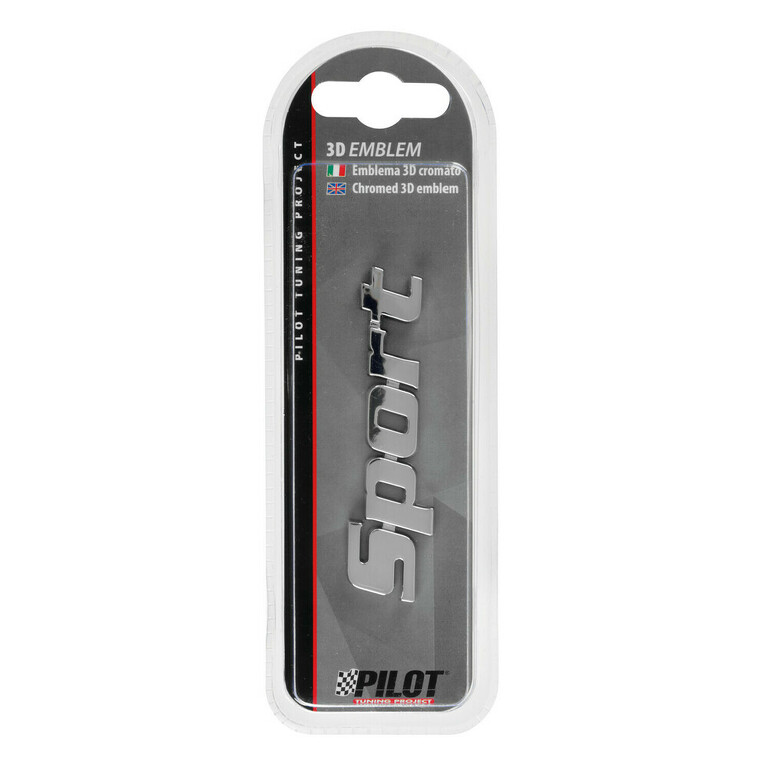3D emblém s chromovaným vzhledem s nápisem "sport".