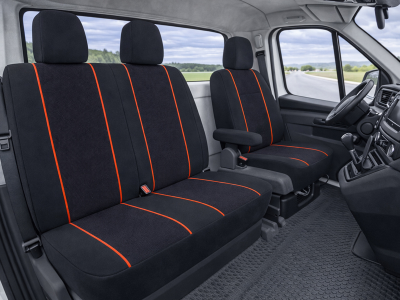 Autopotahy MITO pro přední sedadla dodávek z kolekce Luxor. Tyto potahy jsou vyrobeny ze špičkových materiálů určených pro zakázkovou výrobu a šity ručně přímo v České republice.