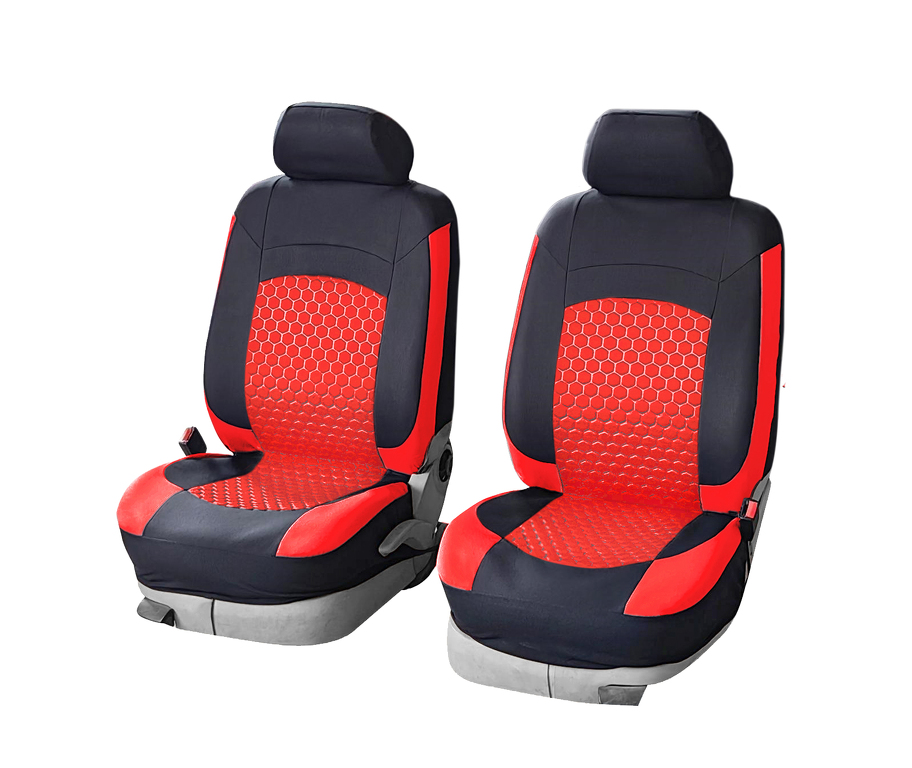 Potahy předních sedadel mají po horní části zip pro opěrky hlavy, který vede až k bokům pro použití se sklápěcími páčkami. Pro instalaci potahů není nutné odnímat přední opěrky hlavy.