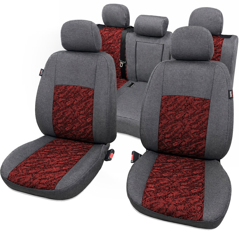 Potahy mají připravené otvory na opěrky hlavy na předních i zadních sedadlech. Opěradlo zadního sedadla má připravený otvor pro 3. bezpečnostní pás. Potahy nemají připravenou kapsu na zadní straně opěradla.