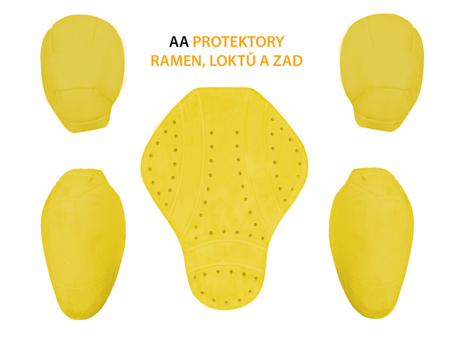 Ochrana jezdce v případě pádu, či nehody, je zajištěna pěnovými, vyjímatelnými chrániči zad, loktů a ramen, a vnitřním vyztužením z aramidových vláken v oblasti chráničů.