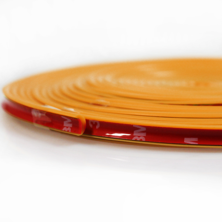 Silicone strip for protecting rims made of light alloys, or parts of the car body. Easy application with 3M adhesive. Concave shape.