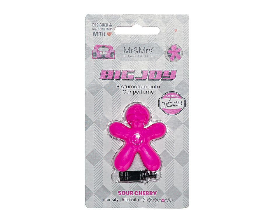 Big Joy is a car air freshener designed by Luca Trazzi in a sporty, pop and colourful spirit. It is made of EVA - a thermoplastic polymer (soft rubber) and releases a pleasant scent when it comes into contact with the air exhausted through the car's air vent.