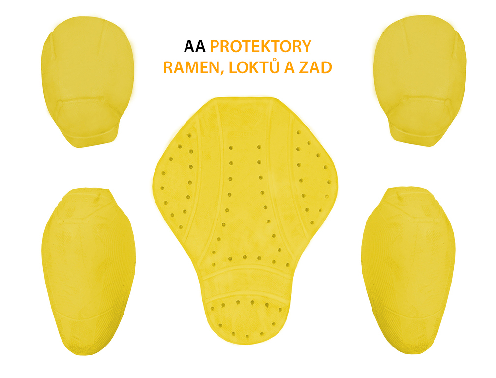 Ochrana jezdce v případě pádu, či nehody, je zajištěna pryžovými vyjímatelnými chrániči ramen, zad a loktů. Další bezpečnostní prvek je zip pro spojení s kalhotami. Bunda jako celek splňuje novou normu CE EN-17092-3 (AA), tedy 2. nejvyšší úroveň ochrany.