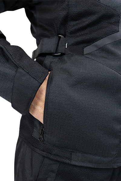 Střih a provedení bundy je uzpůsobeno jízdě na motocyklu. Pas a rukávy nabízí možnost upravení rozměrů pro co nejlepší padnutí i s další vrstvou oblečení a rukavicemi. Nosit ji můžete i v létě díky ventilačním panelům na hrudi a menšími ventilačními kapsami na hrudi i zádech. Bunda je vybavena třemi vnějšími voděodolnými kapsami, dvěma vnitřními a dvěma ve vložce.