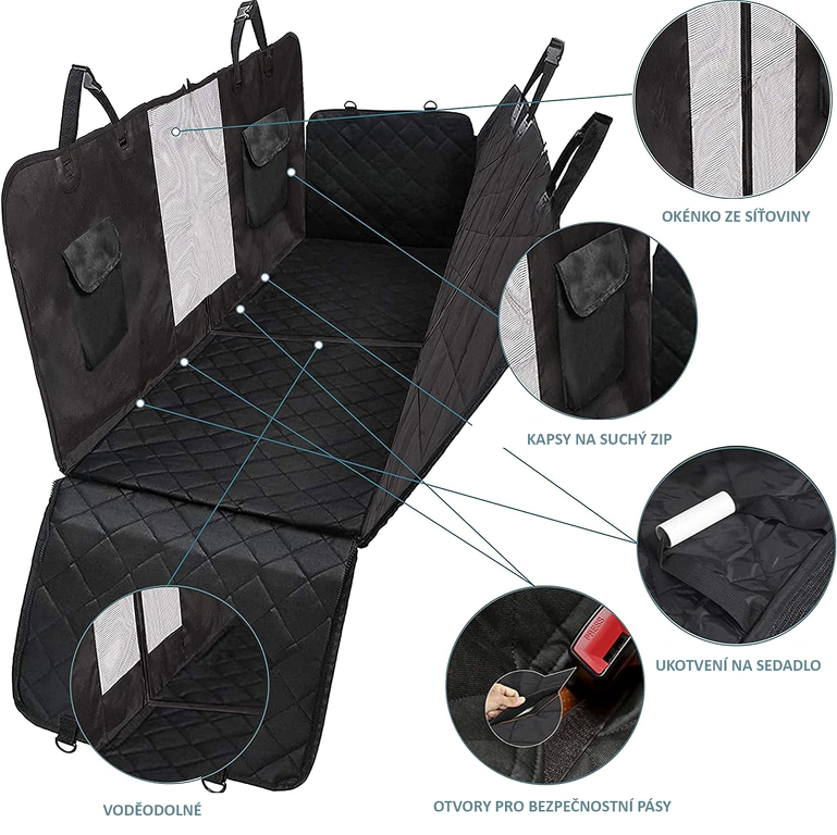 Autopotah pro ochranu zadních sedaček a dveří při přepravě domácích mazlíčků, nářadí, materiálu a mnoha dalších věcí, které mohou znečistit interiér Vašeho automobilu. Podložka je vyrobena z kvalitních nepropustných materiálů, tudíž nehrozí nebezpečí ušpinění sedaček a dveří. Rub podložky je vyroben z protiskluzové síťoviny.