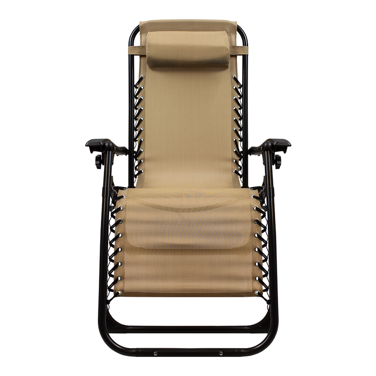 Comfortable recliner with steel frame and water-repellent plastic fabric cover. For extra comfort it is equipped with a small cushion under the head. The backrest can be reclined by approx. 40° and the footrest to an almost horizontal position. The chair can be folded and unfolded quickly and easily.
