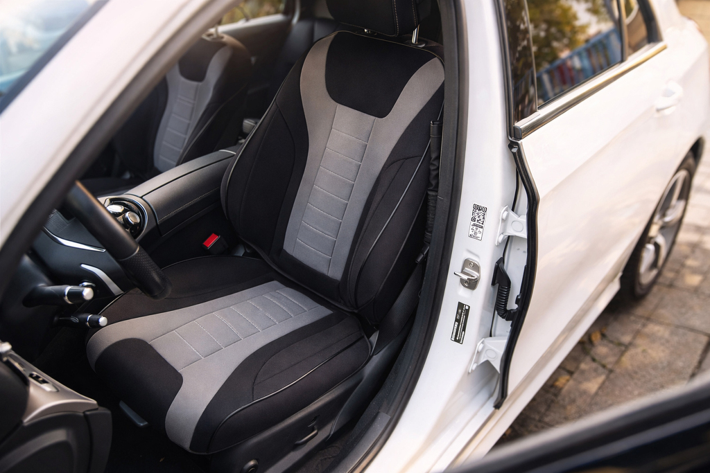 Installation of the cover is very easy and quick thanks to the zipper on the upper edge of the backrest and plastic wheels that you pull between the seat and the backrest. The backrest cover does not cover the back of the seat and therefore does not cover the tables or pockets. In addition, the cover can be used with heated and ventilated seats.