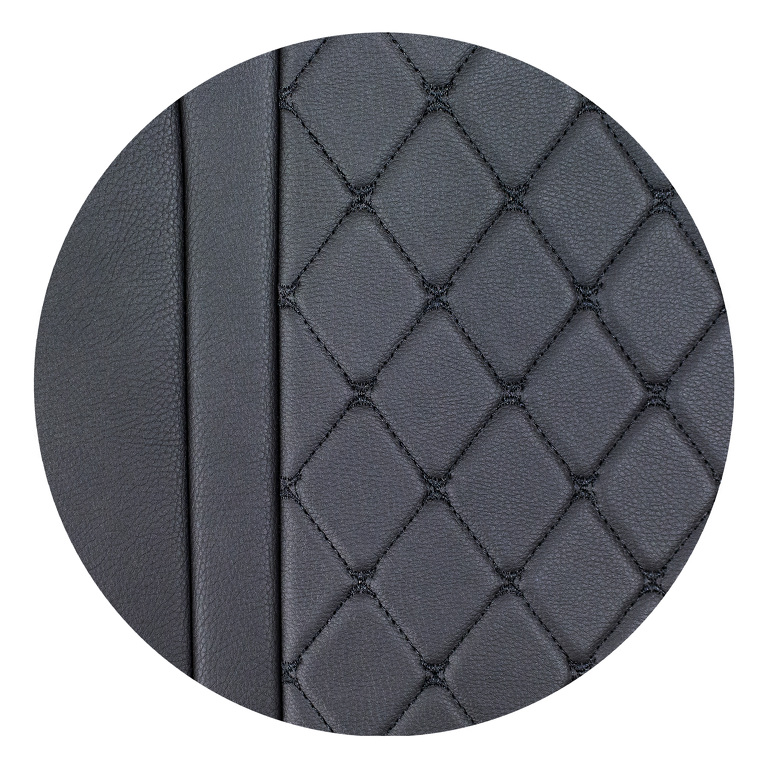 Autopotahy neklouzají po sedadle díky měkkému molitanu na vnitřní straně potahu. Středové části jsou vyrobeny z eko kůže. Boky z elastického polyesteru a záda z eko kůže.