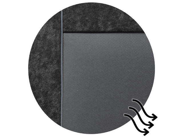 Autopotahy neklouzají po sedadle díky měkkému molitanu na vnitřní straně potahu. Středové části jsou vyrobeny ze silně podvrstvené eko kůže. Boky ze semišové čalounické tkaniny v alcantarovém stylu a záda z elastického polyesteru.