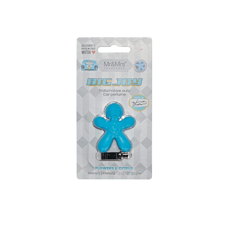 Big Joy je osvěžovač vzduchu do auta, který navrhl Luca Trazzi ve sportovním, popovém a barvitém duchu. Je vyroben z EVA - termoplastického polymeru (měkké pryže) a při kontaktu se vzduchem vypouštěným ventilačním otvorem automobilu uvolňuje příjemnou vůni.