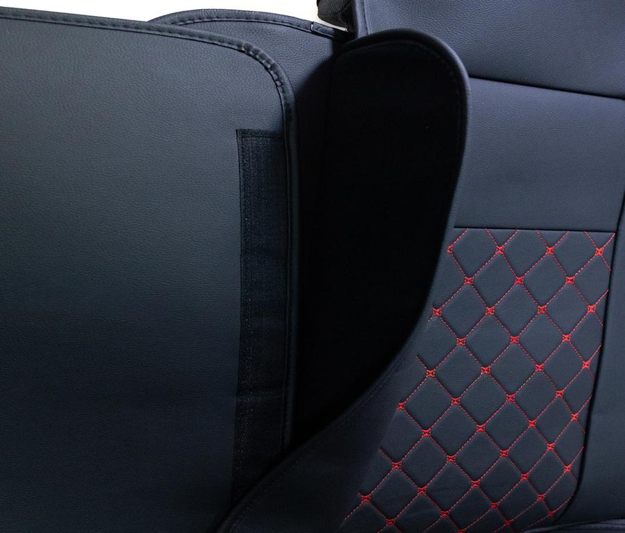 Autopotahy neklou­zají po sedadle díky měkkému molitanu na vnitřní straně potahu. Středové části jsou vyrobeny z eko kůže. Boky z elastického polyesteru a záda z eko kůže.