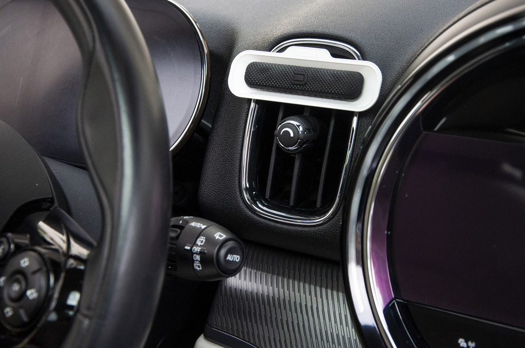 - Upevnění do mřížky výdechu klimatizace pomocí kolíčku