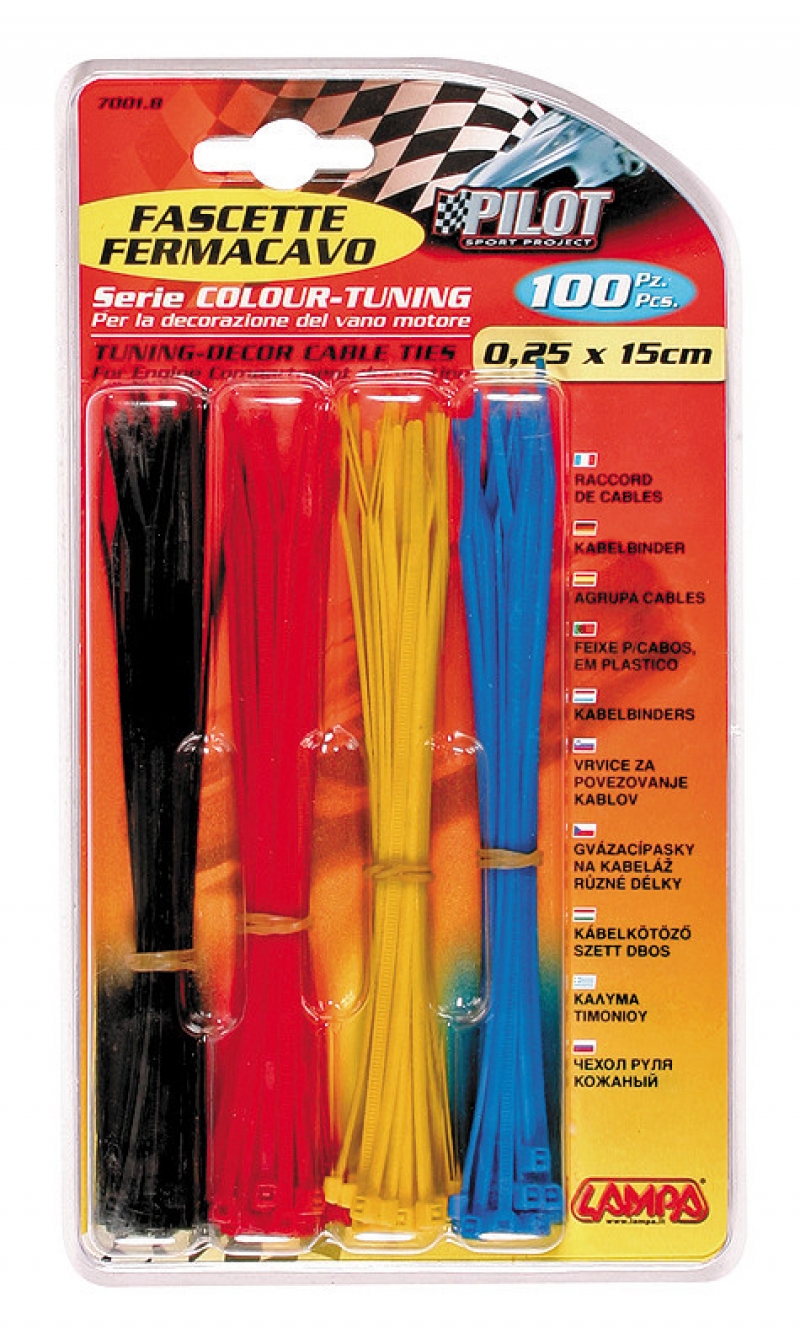 Sada barevných stahovacích pásků se samozajišťovací svorkou. Jednoduché použití.