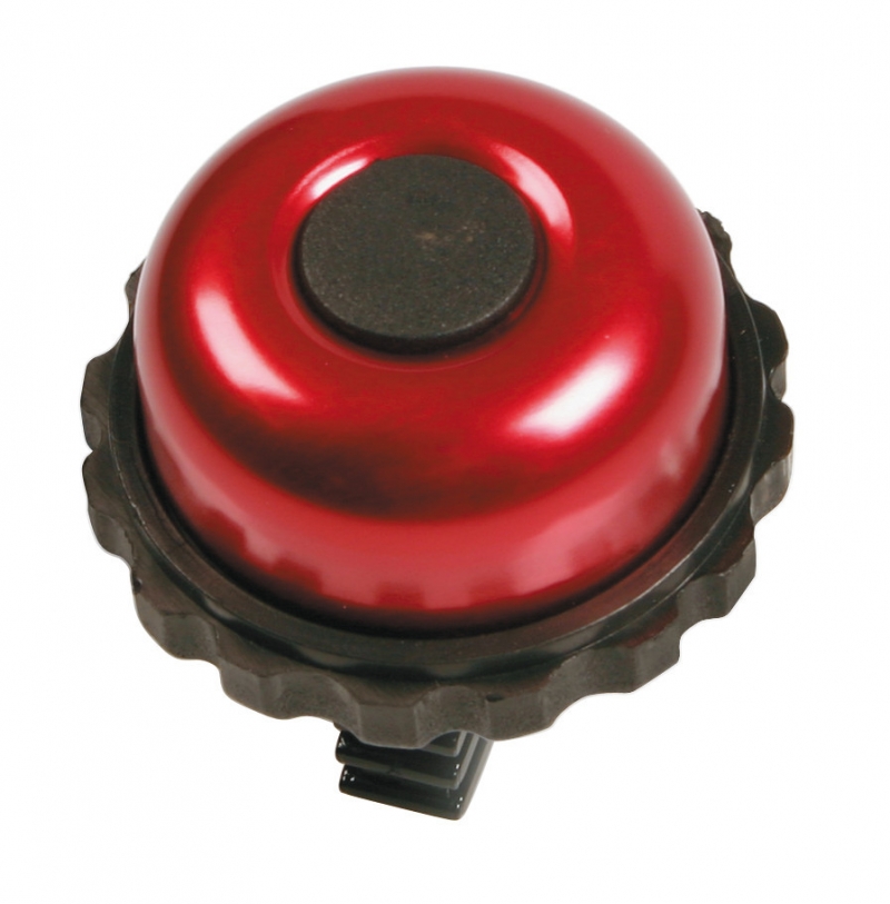 Rotační zvonek na kolo. Zvoní rotací kroužku v obou směrech. Univerzální uchycení, vhodné pro umístění na pravé i levé straně.