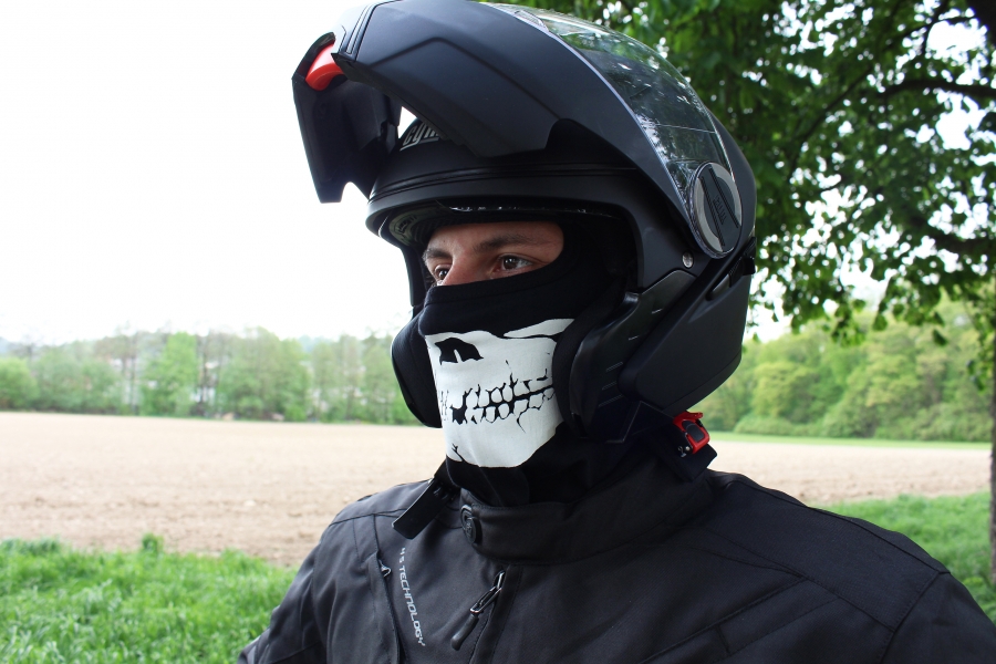 Il cappuccio con motivo a teschio offre comfort termico, segue la forma della testa e protegge anche dalle abrasioni. Protegge il collo e la testa allo stesso tempo.