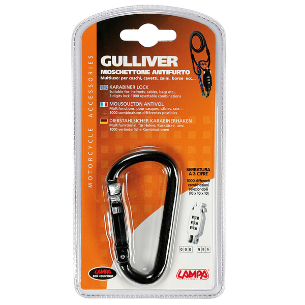 Indicazioni: ogni serratura è impostata di fabbrica su 000. È possibile cambiare impostando la combinazione predefinita e aprendo il lucchetto. Quindi premere il pulsante nello spazio tra il lucchetto e il moschettone utilizzando un cacciavite.