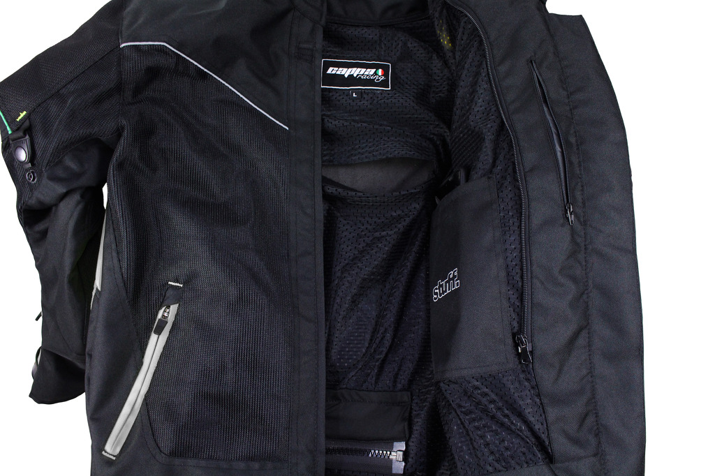 La giacca offre la possibilità di regolare le dimensioni delle maniche e dei fianchi, nonché di agganciare la giacca ai pantaloni grazie alla cerniera. Grazie alla sua funzionalità, la giacca da moto da uomo Monte Carlo è uno dei modelli di abbigliamento più popolari tra i motociclisti. La giacca ha il vantaggio di un materiale traspirante adatto alle calde giornate estive.