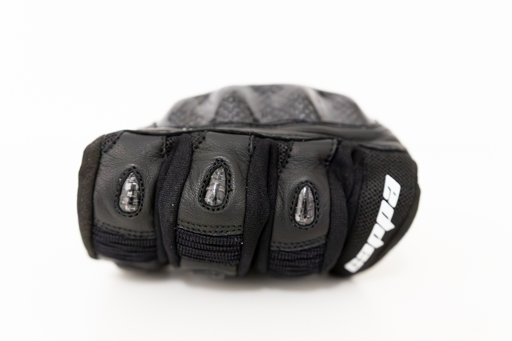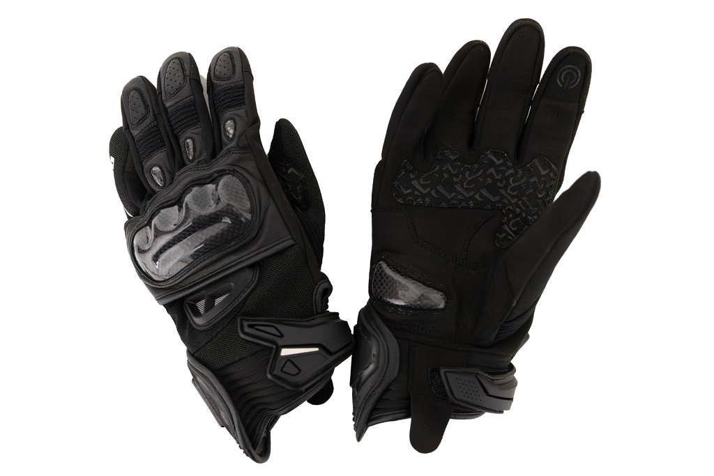 Guanti corti da moto SILVERSTONE in pelle. Con solidi cuscinetti e rinforzi su palmo e dita.