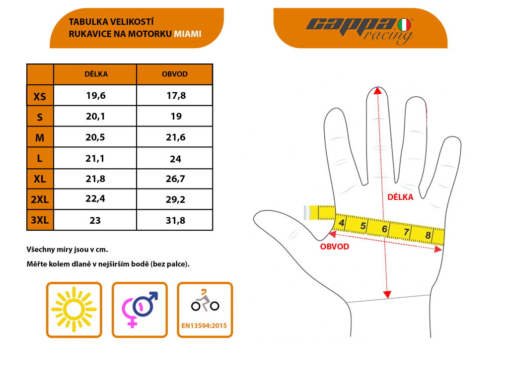 Grazie all’elevata traspirabilità, i guanti MIAMI sono ideali per il clima caldo. Il palmo in pelle garantisce una presa sicura e una buona aderenza al manubrio.