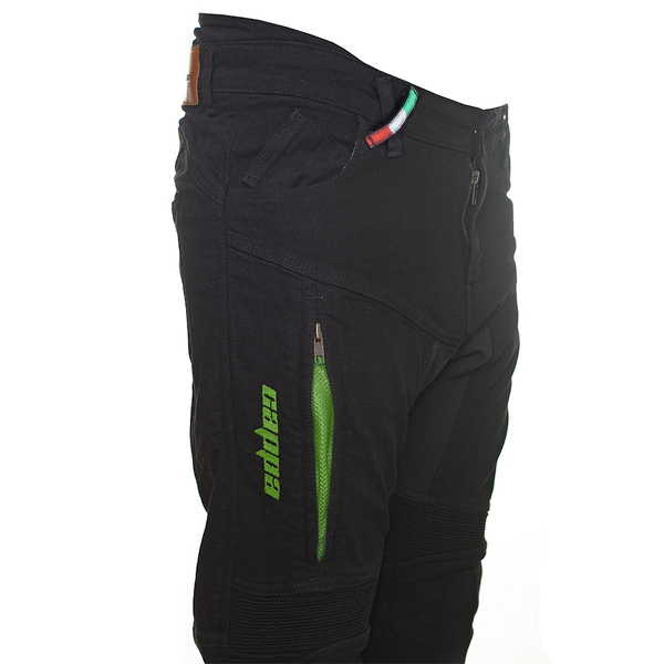 Il taglio e il design dei pantaloni sono adatti alla guida in moto. Il cavallo è traspirante ed elasticizzato per garantire il comfort quando si è seduti in sella. La vita alta è leggermente elasticizzata insieme alle ginocchia per una vestibilità ottimale. È possibile indossarli anche con il caldo estivo grazie ai pannelli di ventilazione sulle cosce.