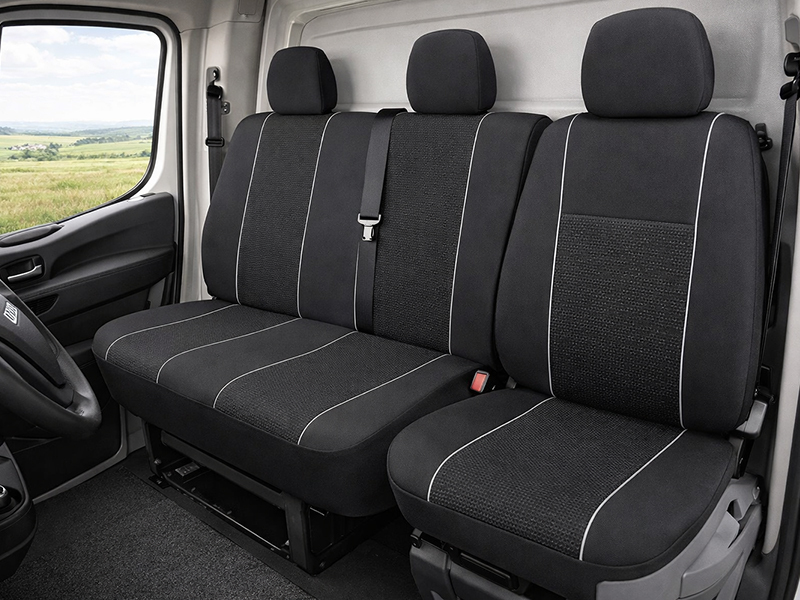 Autopotahy MITO pro přední sedadla dodávek z kolekce Luxor. Tyto potahy jsou vyrobeny ze špičkových materiálů určených pro zakázkovou výrobu a šity ručně přímo v České republice.