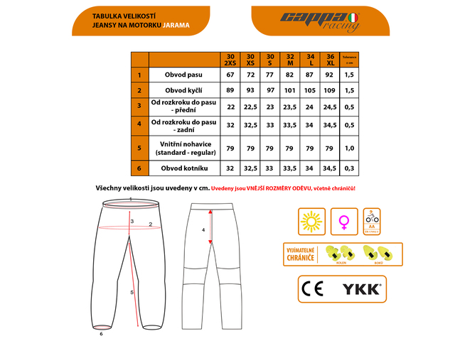 - Vyztužené kevlarem v oblasti rozkroku, hýždí a kolen