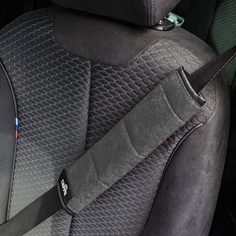 Univerzální ochrana na bezpečnostní pás před řezáním a tlačením. Odolná čalounická látka semišového stylu s elegantním vzhledem, který zapadne do interiéru jakéhokoliv vozidla. Vhodné pro děti i dospělé.